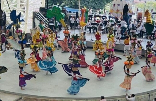 Entre los primeros números del programa, destacaron las Chinas Oaxaqueñas de Genoveva Medina, quienes interpretaron el tradicional Jarabe del Valle. Ataviadas con coloridas faldas y canastas florales, y acompañadas por toritos y marmotas, el grupo fue liderado por Sayra Altamirano, nieta de Genoveva Medina, quien continúa esta tradición familiar iniciada en 1957.