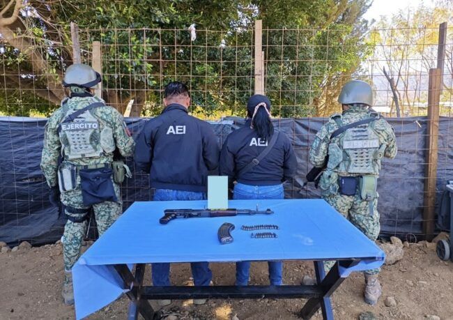 En el inmueble localizaron cientos de dosis de narcóticos marcadas con dos colores y bidones de combustible robado (huachicol). Además, un fusil AK-47 calibre 7.62, conocido como “cuerno de chivo”.
