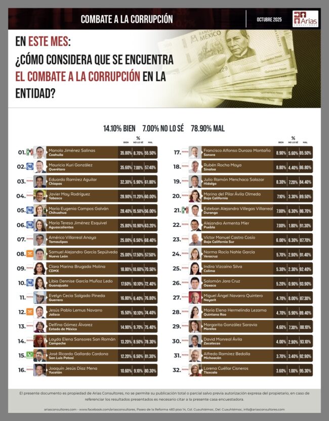 En conjunto, la encuesta perfila un escenario de crisis política para la administración estatal. Con más del 90% de la población a favor de la revocación, bajos niveles de credibilidad y percepciones desfavorables en todos los rubros evaluados, el gobernador enfrenta uno de los peores momentos de su gestión.