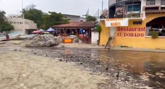 Puerto Escondido, #Oaxaca, rumbo al colapso ambiental; lluvias colapsan drenaje e inunda de aguas residuales la bahía